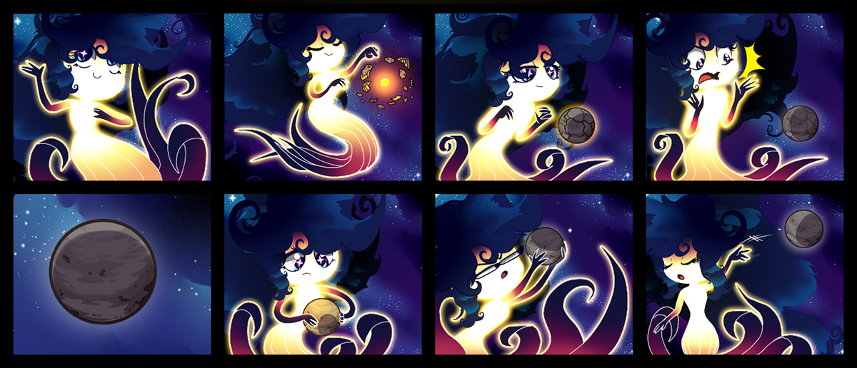 We aren’t forgetting about our older stuff, of course. Even Kinoko – who was created all the way back in 2011 – has had a subtle design refresh to go along with his shiny new name. He even got a vehicle to cruise about space in. Perhaps most importantly of all, Blackhole – the universe’s ultimate and unstoppable big bad – finally got a deliciously evil design and some character development, after being initially created in 2013.