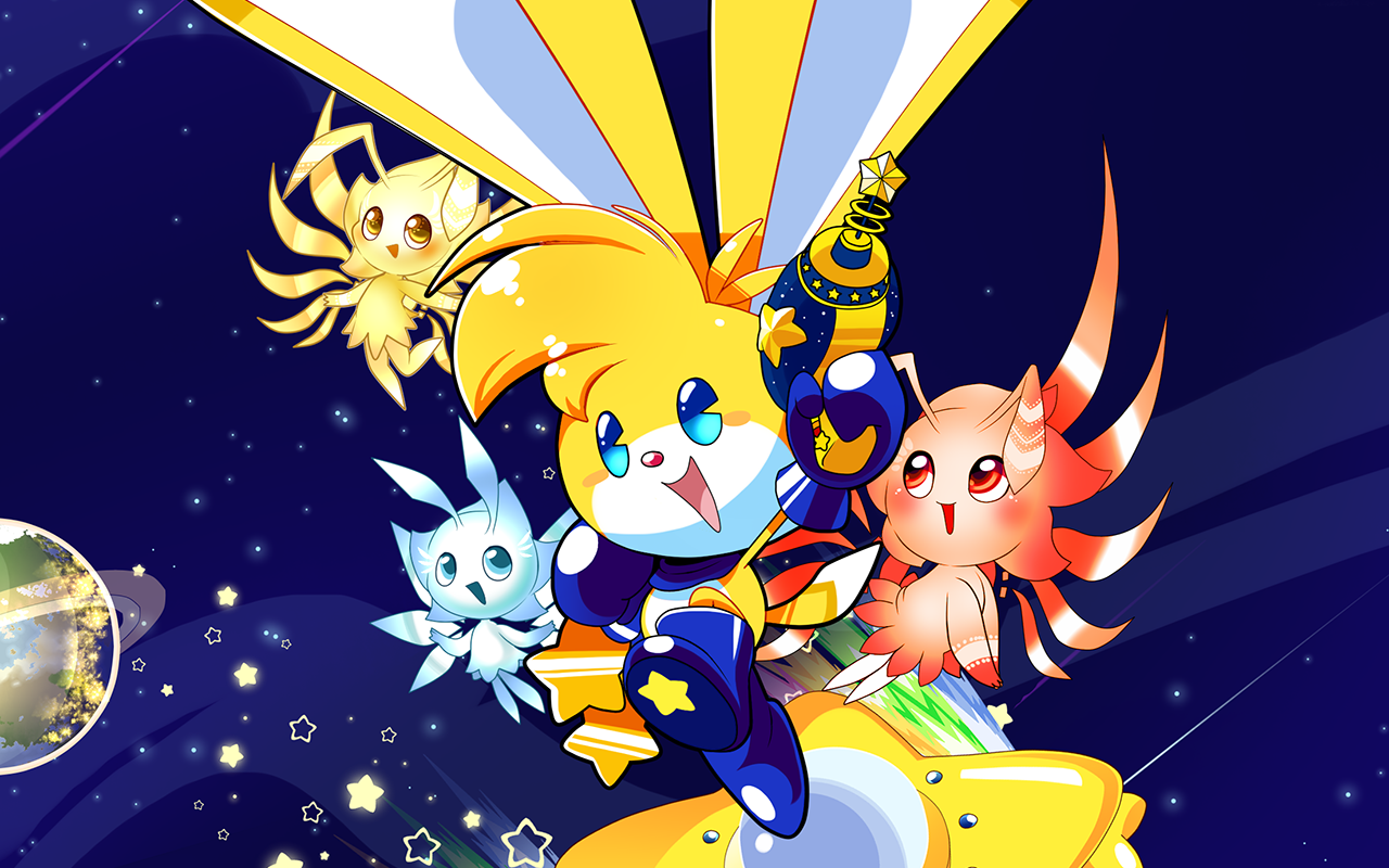 As Kinoko explores the game’s various planets, he’ll occasionally come across the remains of crashed meteorites. These mysterious space rocks contain trapped starsprites. Whenever Kinoko releases one, they’ll join him on his travels, helping him out on his mission by protecting him from harm, and sometimes even providing powerful enchantments to power-up his abilities.