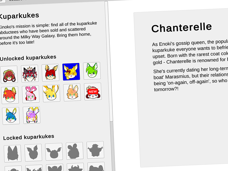 A couple of blog posts ago, at the end of January, we talked about rescuing kuparkukes in our game. Since that earlier post, we’ve made a lot of progress on expanding that side of the game and developing these ideas into a complete collectables system. This week, that’s what we’re introducing!