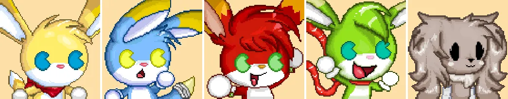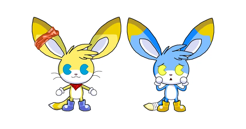 What’s perhaps most interesting about these two characters, when placed side-by-side like this, is that their ears were the same length. Initially, there was never anything extraordinary about Kinoko’s ears at all. As we mentioned before, he was designed initially as a long-eared rabbit, and then even when he became a kuparkuke his ears remained long and Neemal’s ears were also long because – with no other reference besides Kinoko himself – that’s just how the fictional species looked at the time.