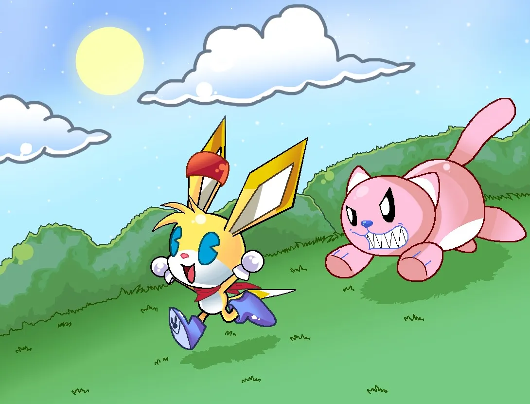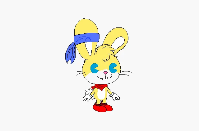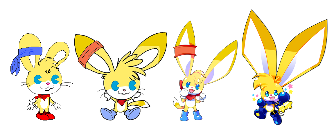 Kinoko’s design evolved a little bit during this time (we’re going back to calling him that now). As mentioned before, his rabbit-like features were gradually phased out - he lost the bucked teeth and the whiskers, his tail become longer, and his ears grew bigger and more pointed. His outfit changed, introducing blue boots instead of his original red ones, and an orange band which he wore wrapped around his ear. This is the design that Kinoko would retain – largely unchanged – for the next 11 years.