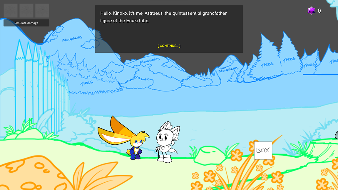 When we dropped Unity, we’d just started a process of adding more levels and dealing with the connections and transitions between them. Since starting in Godot, we’ve stuck with one level for the time being, which Chelsey’s taken the opportunity to redesign and lengthen. Instead of building the game outwards, we’ve continued to focus on building it upwards, restoring mechanics such as the starsprite-based player health system, and introducing new mechanics for Kinoko such as a melee attack and a dodge roll. For the time being, this is something we’ll continue to do, since the first level alone gives us plenty to work on and improve in the short-term.