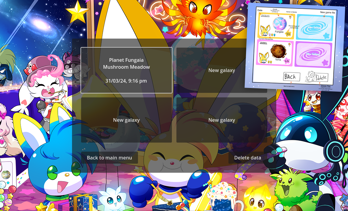 What’s Starlight City, you say? Well hopefully we’ll have loads more to say about that in future updates, but I believe we’ve alluded to the inclusion of an outer space ‘hub area’ before, if not here in our blog then certainly on our social media. In short, Starlight City is planned to be a hub for unlocking new technology at Melodia’s Workshop, acquiring divine new skills at the shrines, purchasing dashing new outfits from Madam Daz-zell (another new creation!) at her famous boutique, Luna Isle, and – most importantly – chilling out at Kinoko’s favourite haunt in the entire Milky Way Galaxy: the Star Lounge!
